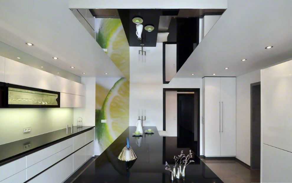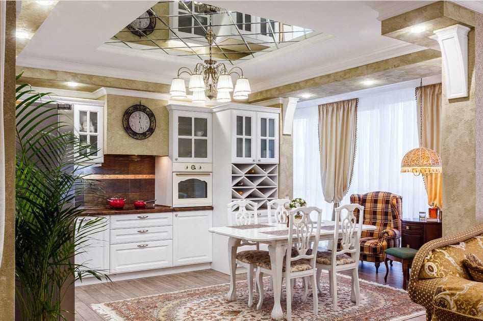 Зеркальный потолок на кухне