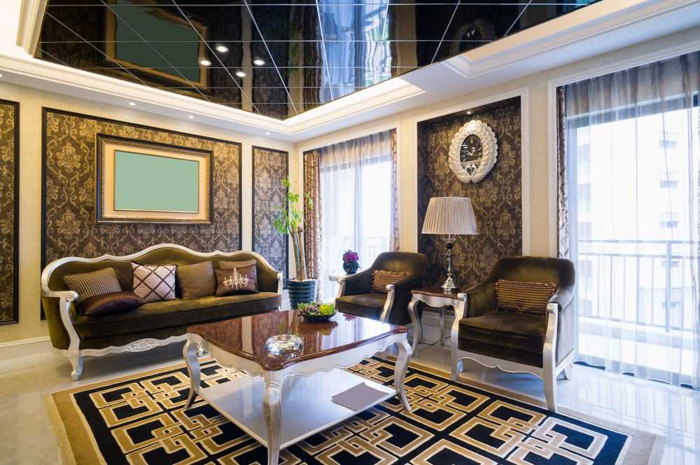 Зеркальный потолок в гостиной